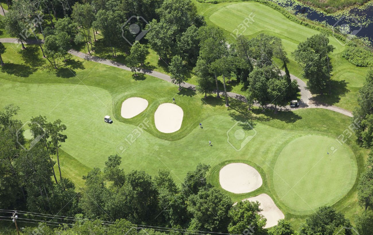 Vista Aerea De Un Campo De Golf De Fairway Y Verde Con Trampas De Arena Los Arboles Y Los Golfistas Fotos Retratos Imagenes Y Fotografia De Archivo Libres De Derecho Image 44151342